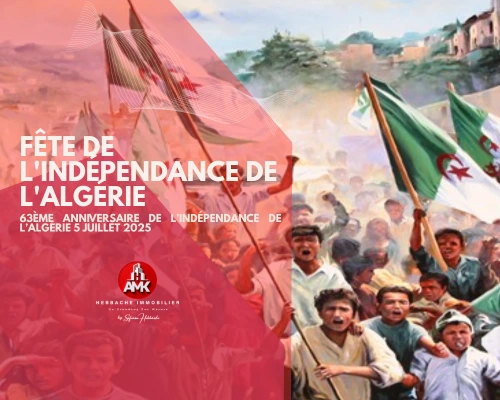 5 Juillet 2025 : AMK Hebbache Immobilier célèbre 63 ans d’indépendance algérienneLe 5 juillet 1962 demeure une date sacrée dans la mémoire collective de notre nation. Elle marque la fin d’un long combat, douloureux mais héroïque, pour la liberté et la sou...