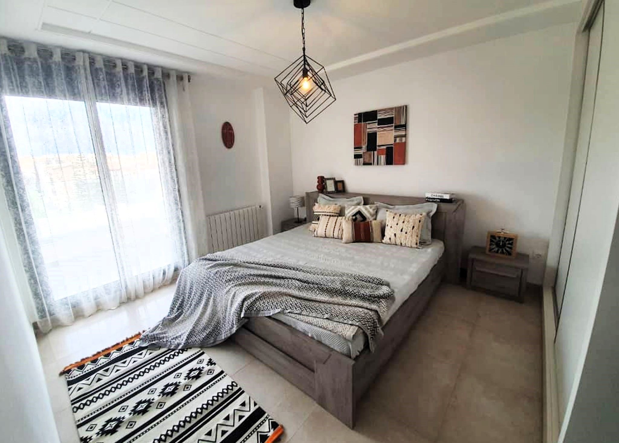 Rideaux légers et stores électriques.